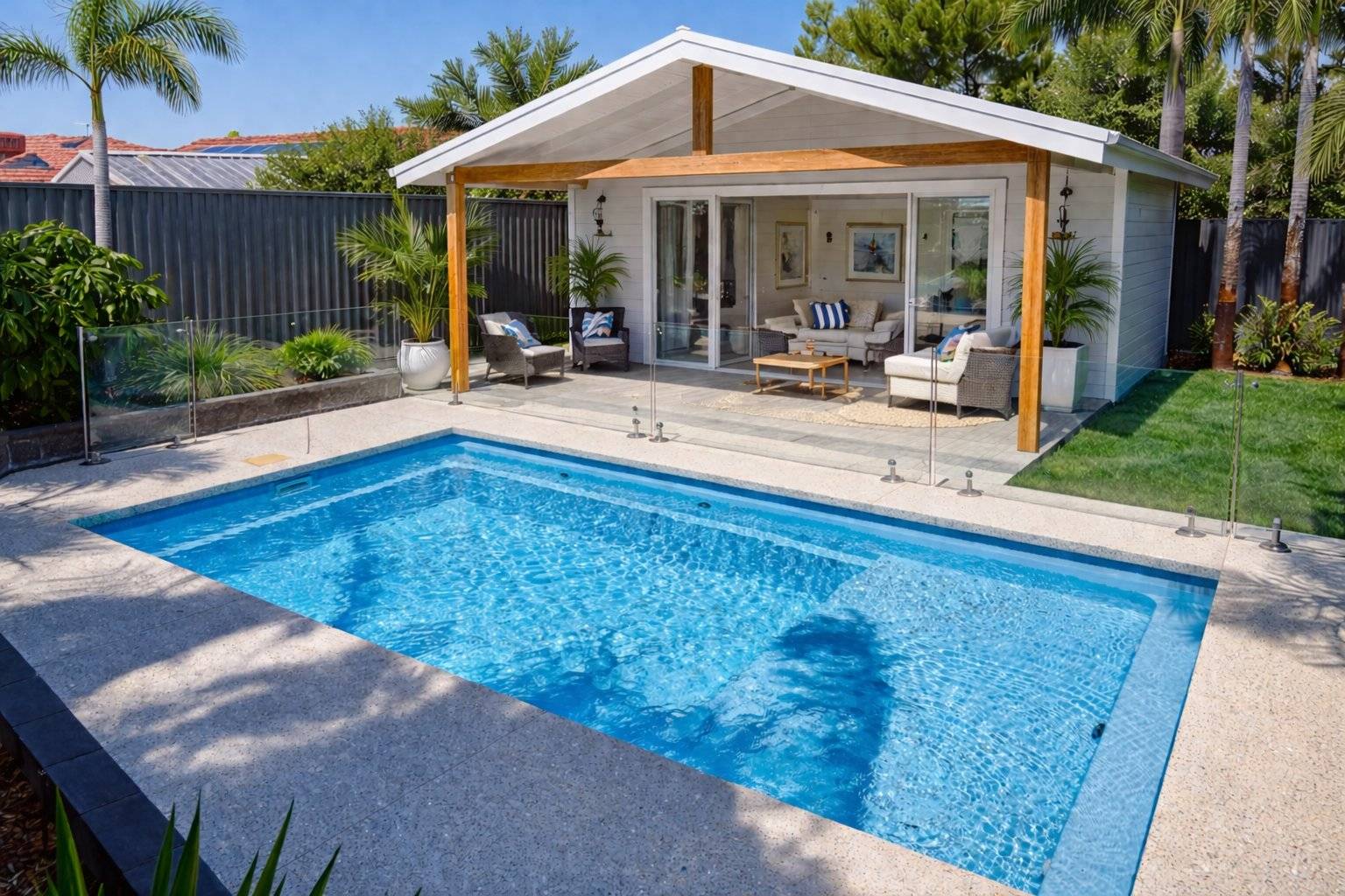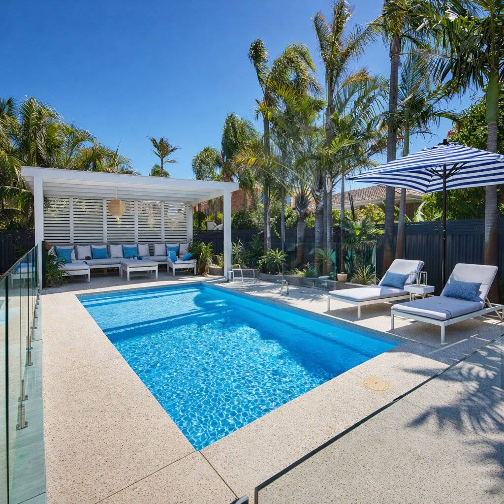 Introducing the Sunseeker Slimline from Barrier Reef Pools’ extensive pool range. This pool showcases our stunning Sky Blue Shimmer colour. Its simplistic and clean design offers a perfect blend of functionality and style, featuring a full-length step for easy access and a spacious splash deck ideal for relaxing with family and friends or creating a fun-filled kids play area. With recessed steps, the Sunseeker Series provides an uninterrupted swimming experience so you can spend more time enjoying the pool and having a splash!